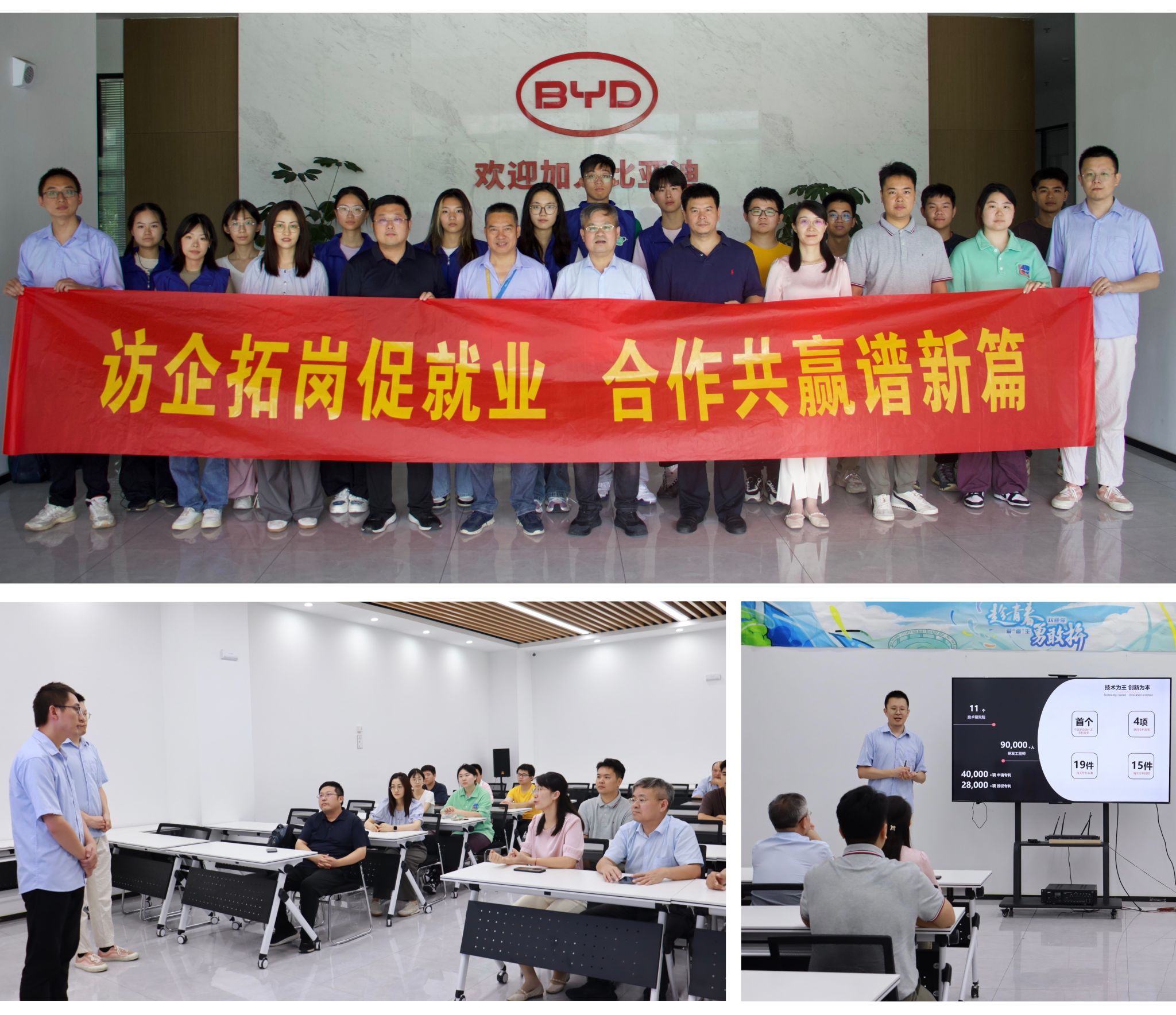 为拓宽毕业生就业渠道,进一步推动校企合作,响应凯发一流应用型大学建设“登峰计划”,7月26日,电力凯发党委书记芮新红带队前往常州比亚迪汽车有限公司开展走访调研。