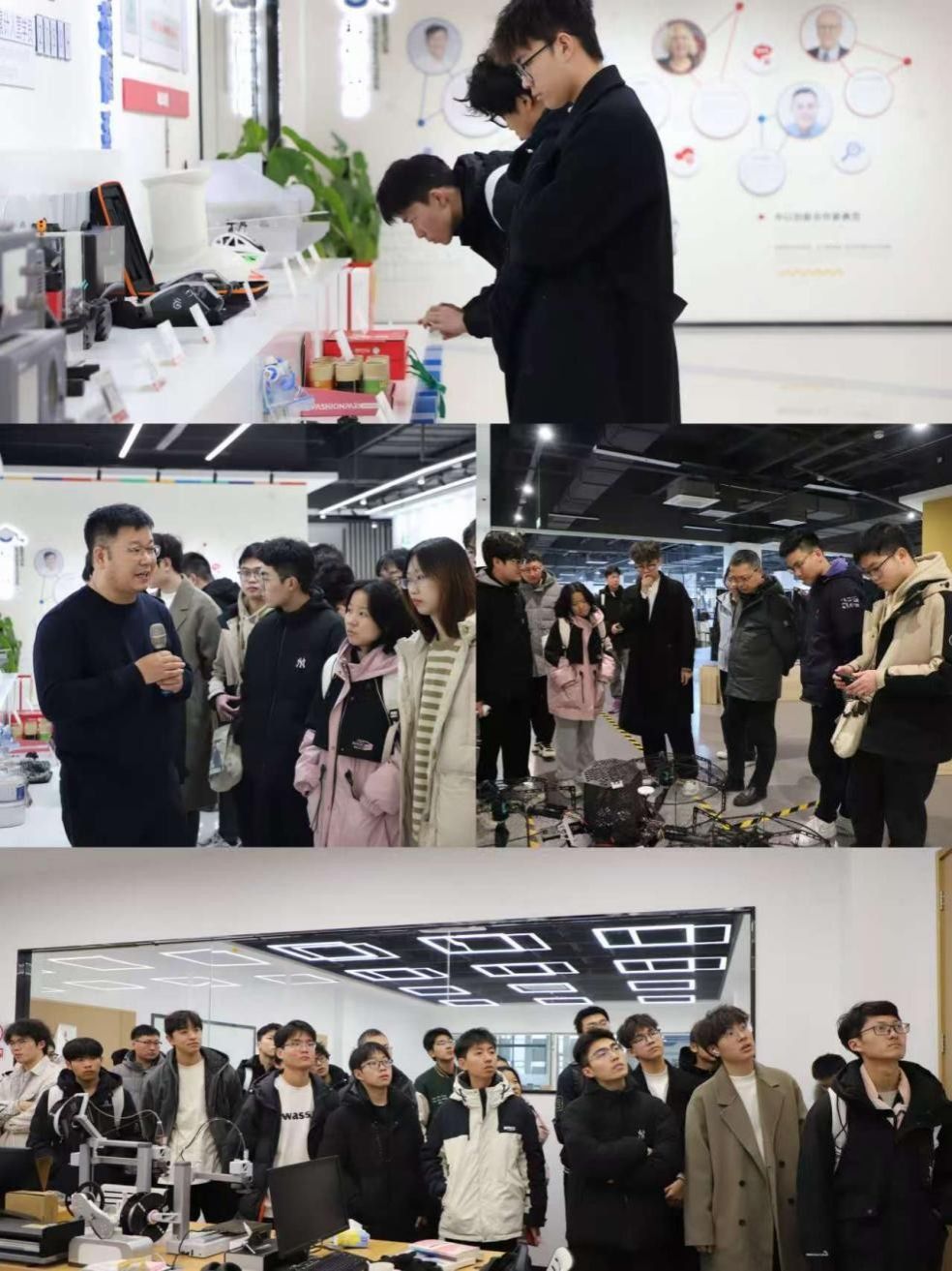 在基地总经理党海平的带领下,师生一行了解了XbotPark孵化模式及多年来深耕硬科技领域的成果。基地展示的先进智能产品涵盖机器人应用、智能制造等领域,从工业机器人到日常智能设备,呈现出智能科技的多元应用场景。师生们认真聆听讲解,与工作人员交流展品设计及技术原理,为学院课程积累了丰富实践案例。