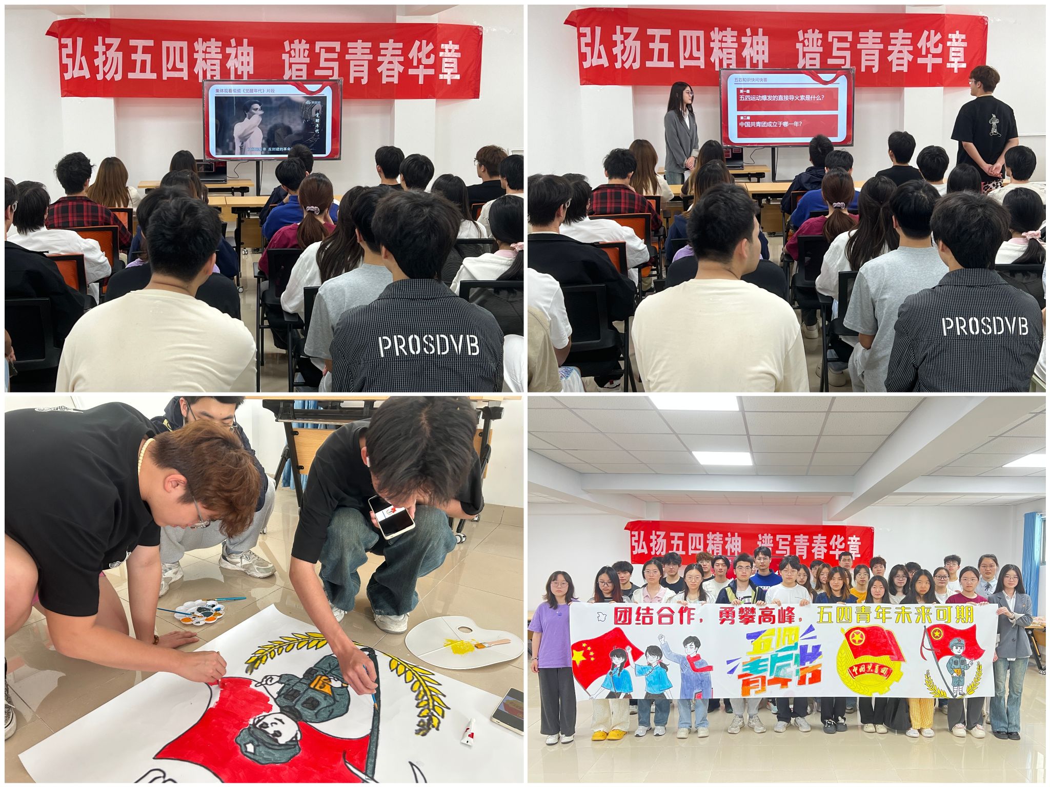 团日活动浸润青年初心。学院在一站式学生社区举办“弘扬五四精神 谱写青春华章”主题团日活动,学生观看《觉醒年代》片段,分享革命先烈事迹,参与党史问答和五四主题画布绘制。“我将把五四精神内化于心、外化于行,勇担重任、砥砺前行。”数媒232班团支书徐影说道。
